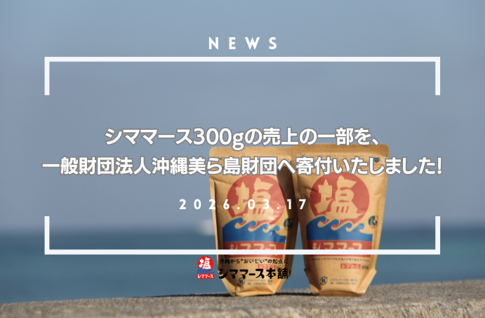 【NEWS】「シママース300g」の売上の一部を、一般財団法人沖縄美ら島財団へ寄付いたしました!